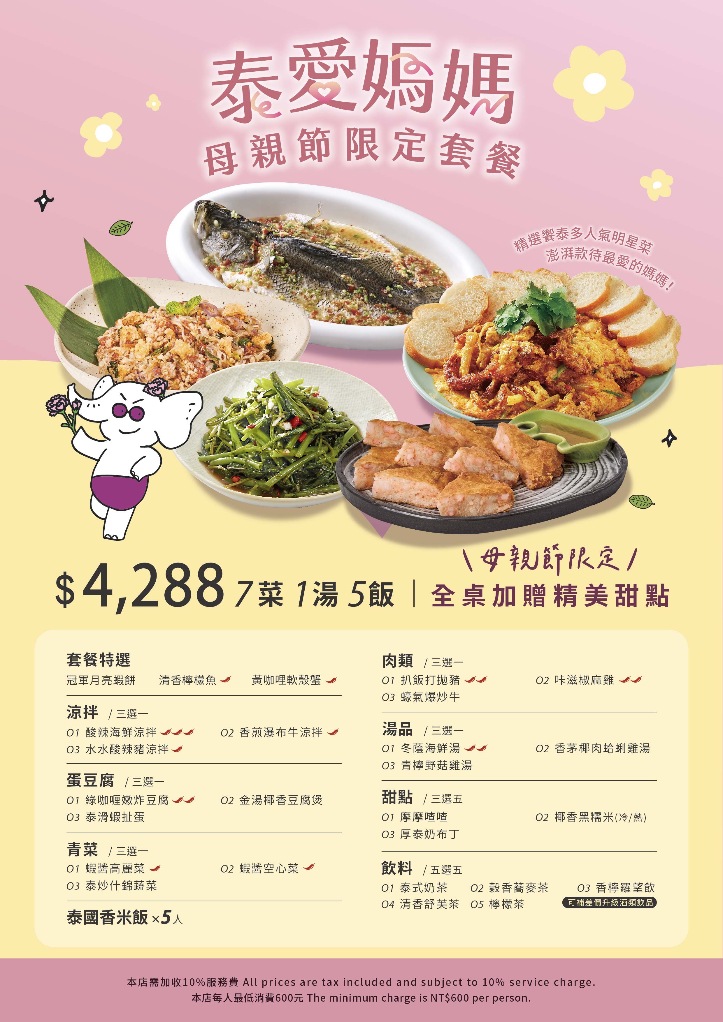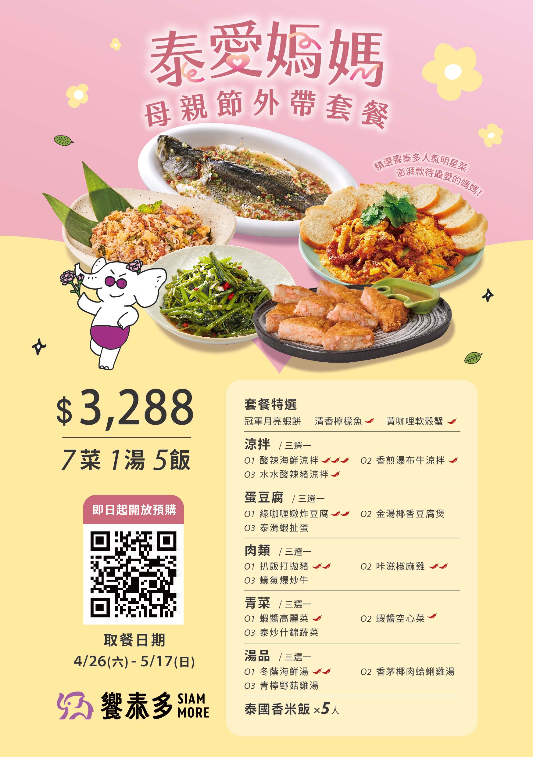 ✨泰愛媽媽 母親節限定套餐✨即日起預購開賣,5/1起內用同步販售!.一桌聚齊饗泰多人氣經典菜色,7菜1湯只要$3,288起🤩陪媽媽輕鬆享受一頓泰味滿滿的聚餐時光。.外帶外送這裡點